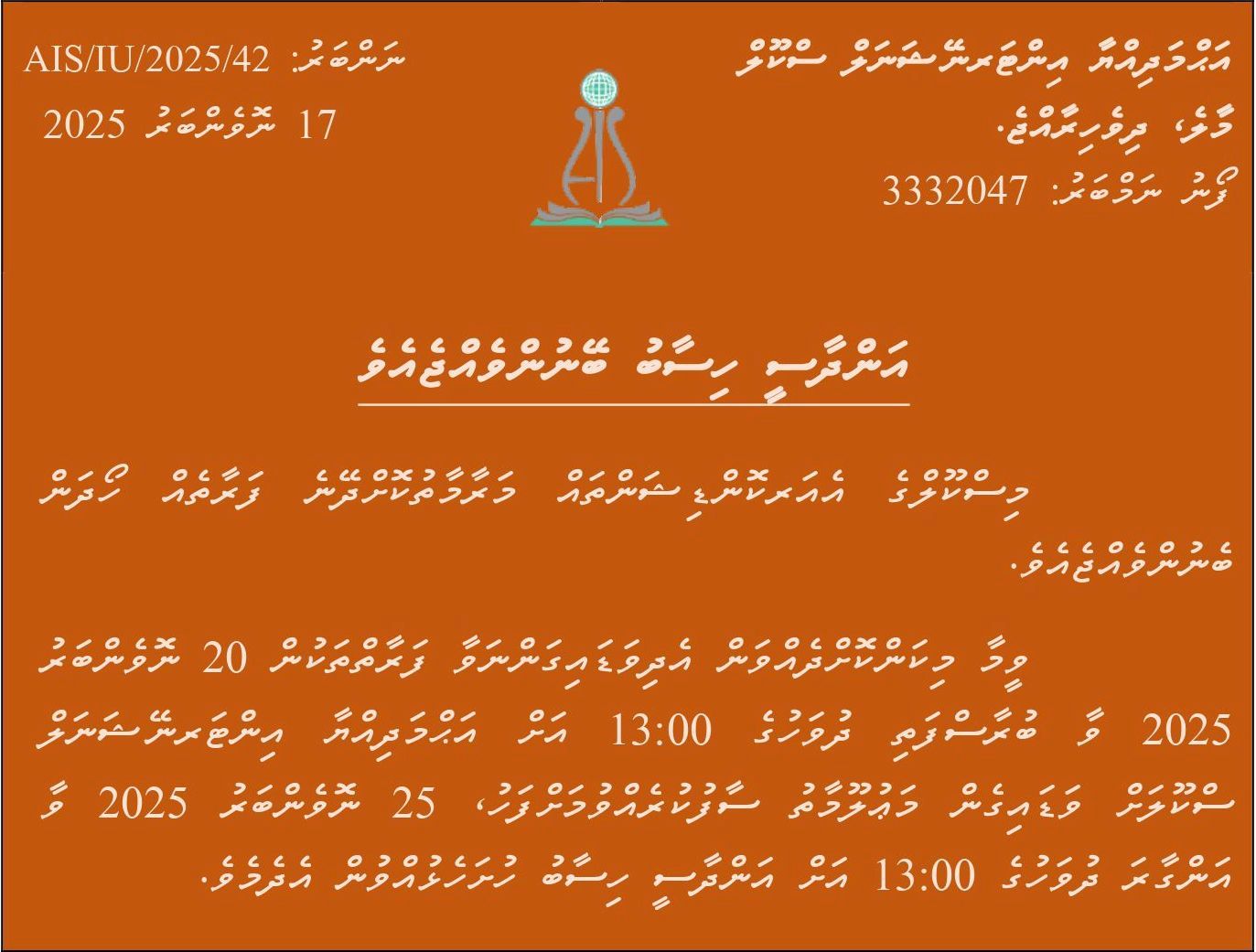 Call us today +960 3332047
