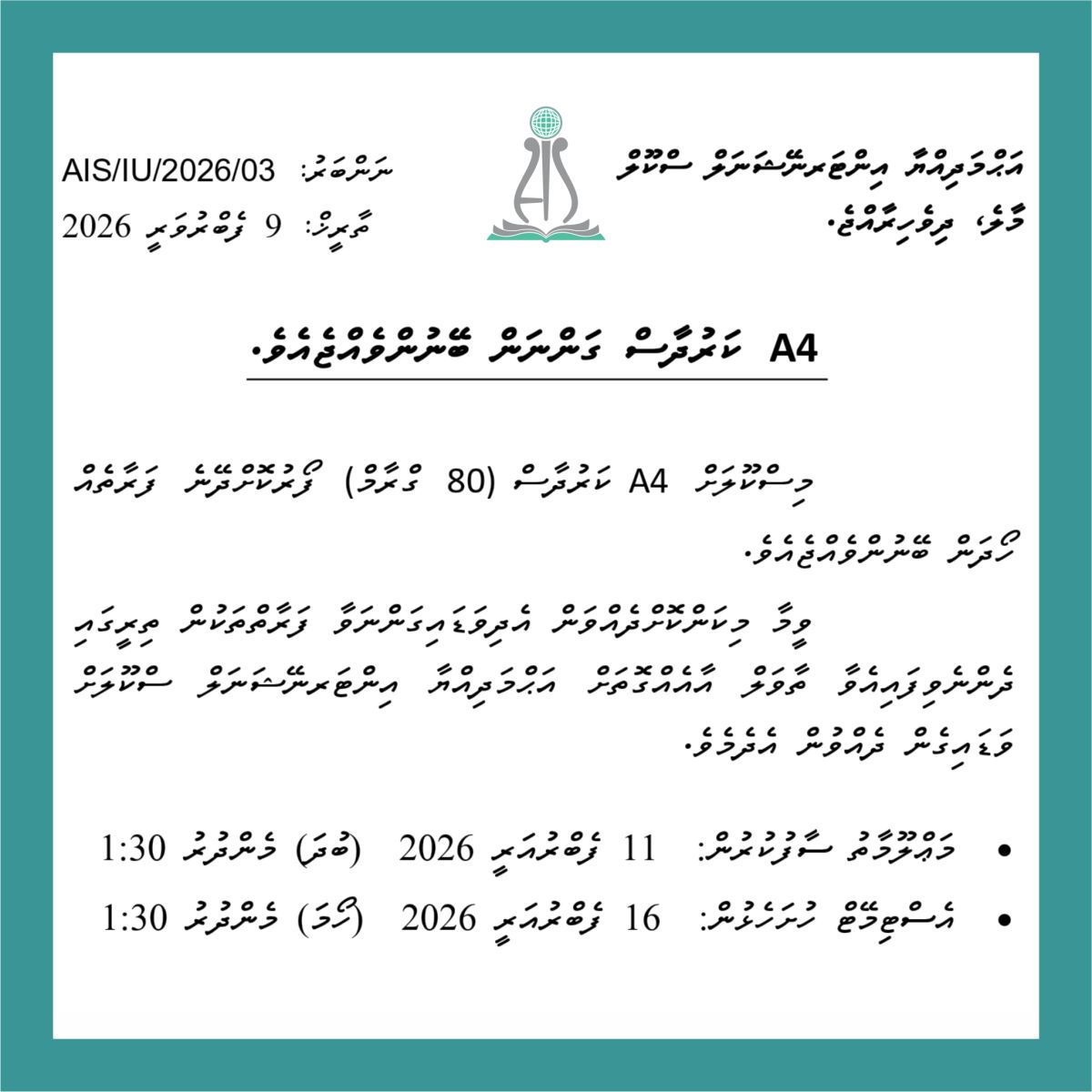 Bid Notification - A4 Ream